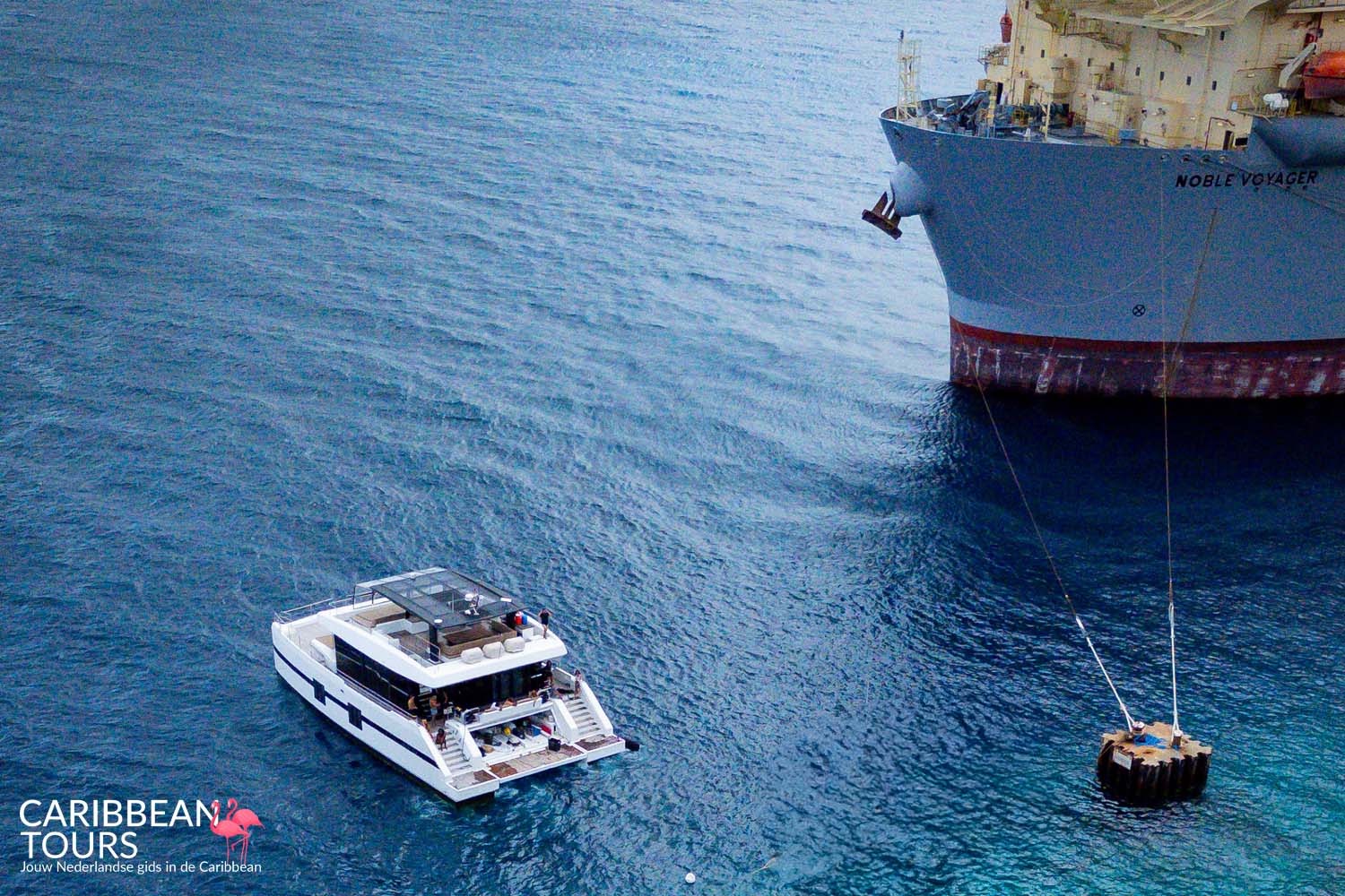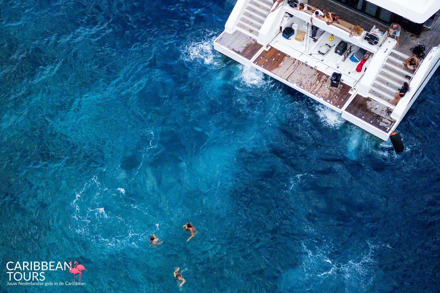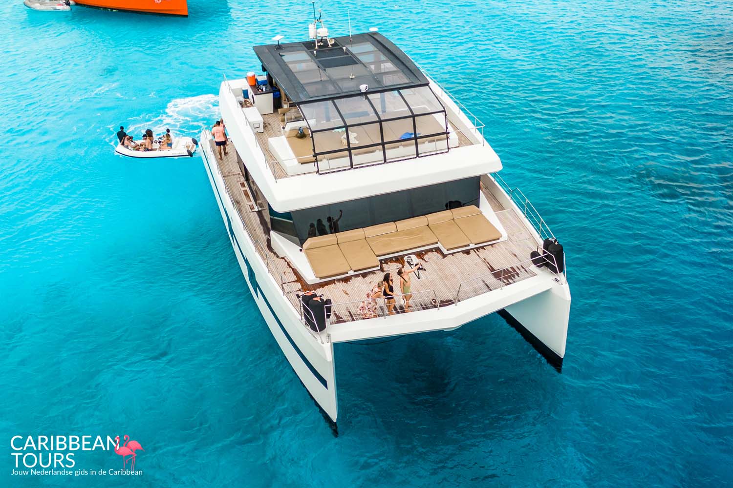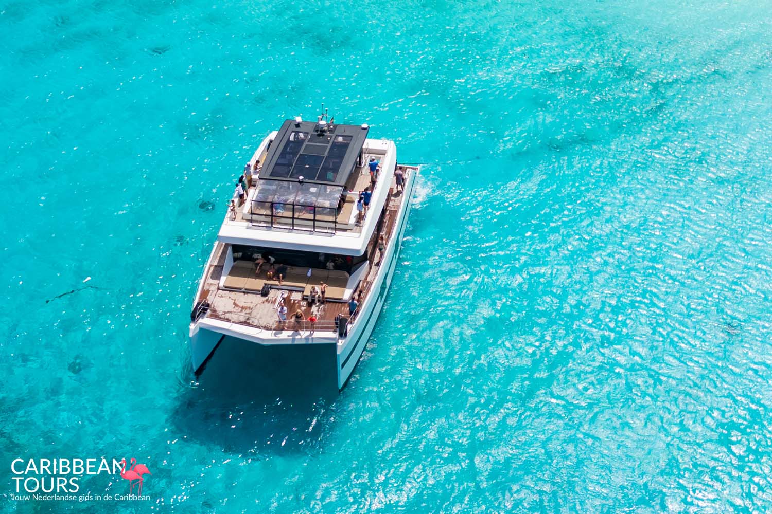 De catamaran vertrekt om 10:00 uur vanaf de haven van Jan Thiel. De tour duurt ongeveer 4,5 uur.