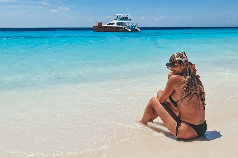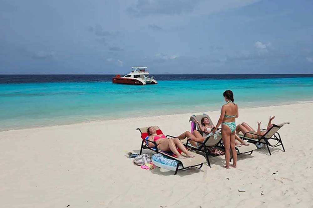 El Topcat es más pequeño que los catamaranes Bluefinn, pero navega con paso firme hasta Klein Curaçao. Si es propenso al mareo, tome una pastilla 30 minutos antes de la salida y permanezca sentado en el exterior. Cuanto más tranquilo se mueva y más mire el horizonte, mejor. Si le preocupa mucho el mareo, también puede tomar la pastilla. Reserva una lancha motora a Klein Curaçao, se le garantiza que no sufrirá mareo debido a la baja posición del barco.
