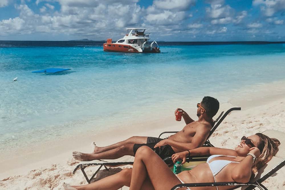 Navegarás hasta Klein Curaçao en el Bluefinn Topcat (máximo 30 personas aprox.). El desayuno se sirve a bordo, seguido de tiempo libre en la isla. Alrededor del mediodía te espera un almuerzo tipo barbacoa. El agua y los refrescos están incluidos, y más tarde se abre la barra libre. A menudo, también hay una gran colchoneta flotante en el agua.