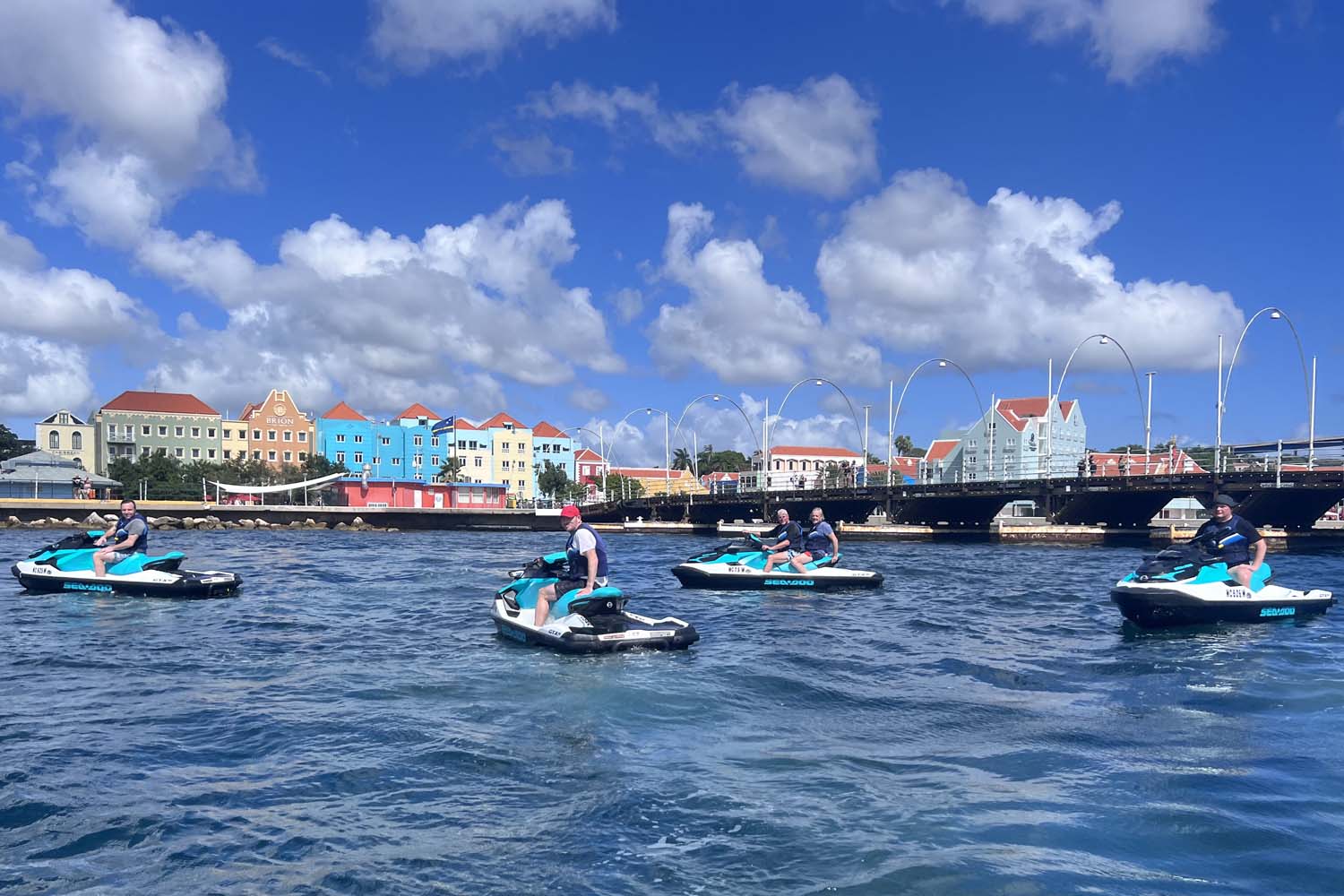 Ontdek de prachtige kust van Curaçao op je eigen JetSki met deze JetSki Tour naar de Pontjesbrug. Tijdens deze 1-uur durende tour, vaar je vanuit Jan Thiel via open zee langs de kust van Punda, naar de wereldberoemde pontjesbrug.