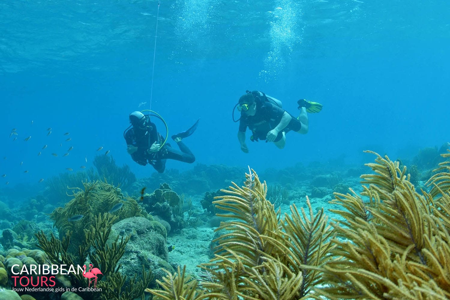 You start the course with dive theory. You can go through this completely before the start of the practice because the interactive PADI e-learning is used. When you start with the practice at the diving school, you only have to dive. In three days you do 5 skill sessions in which you learn to recognize and solve problems. You do this in the bay of Jan Thiel in front of the diving school. This way you get used to the movement of the sea and the salt water. After the skill sessions you are well equipped to enjoy the underwater world in a relaxed way. During the four open water dives you apply the skills you have learned in the open sea. The first two open water dives are on the house reef in front of the diving school and go to a depth of max. 12 meters. The last two open water dives are at two other beautiful dive spots on the island.