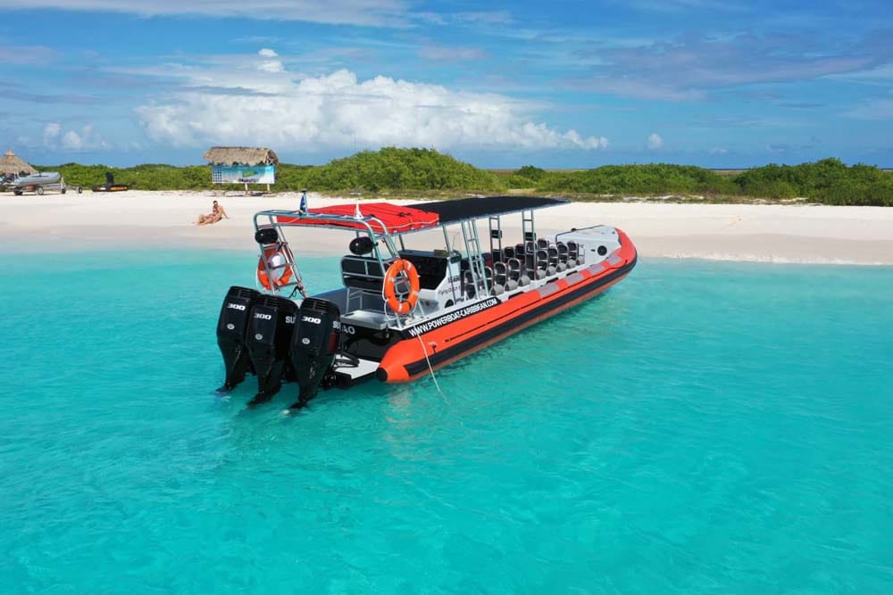 Con la Rib Powerboat, nunca te marearás y podrás llegar a Klein Curazao en tan solo 45 minutos. No elijas un viaje en barco tradicional; toma la Rib Powerboat a Klein Curazao. Ideal si quieres salir más tarde y disfrutar de una experiencia más emocionante. Con la Rib Powerboat, no tendrás que lidiar con el personal, sino con Tamara e Irvin, los dueños de Powerboat Caribbean. ¡Prepárate para un día inolvidable!