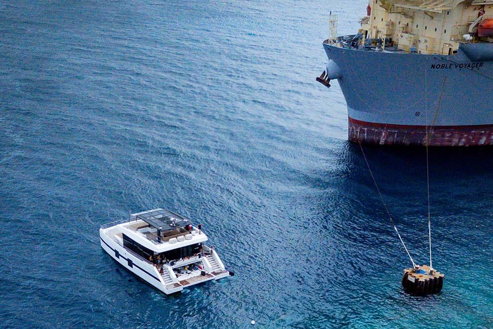 De catamaran vertrekt om 10:00 uur vanaf de haven van Jan Thiel. De tour duurt ongeveer 4,5 uur.
