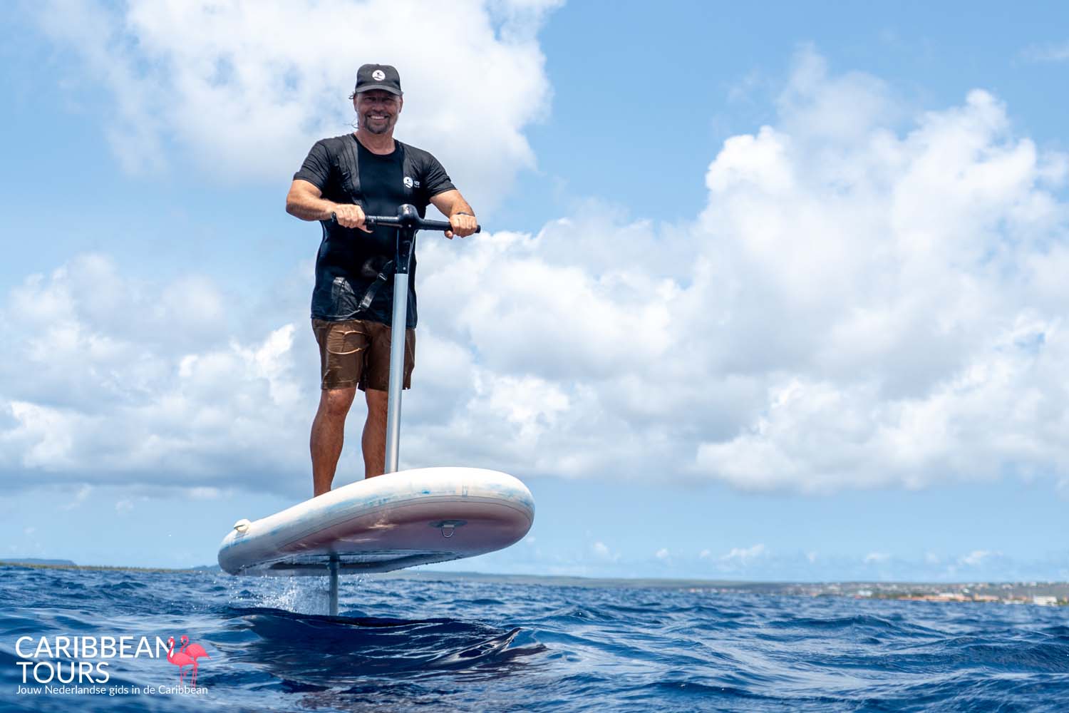 Stel je voor dat je boven het kristalheldere water van Bonaire vliegt, aangedreven door een elektrische hydrofoil surfboard. Met een E-Foil kun je moeiteloos over het water glijden, zonder wind of golven nodig te hebben. Het gevoel van vrijheid en snelheid is absoluut magisch en zal je een adrenalinekick geven die je nergens anders vindt.