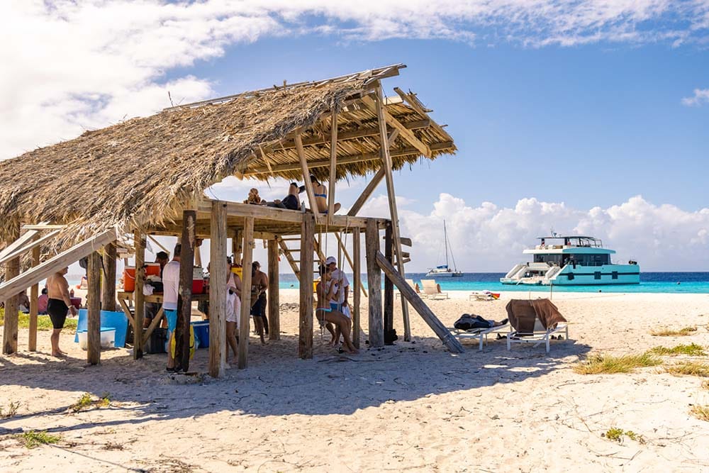 Je vaart met een luxe catamaranjacht (Gold Seahorse) naar Klein Curaçao. Aan boord krijg je eerst een brunch, later een luxe BBQ-lunch. Water en fris zitten de hele dag bij de prijs. Je kunt kiezen bij je reservering voor een premium open bar met alcohol tegen een toeslag.