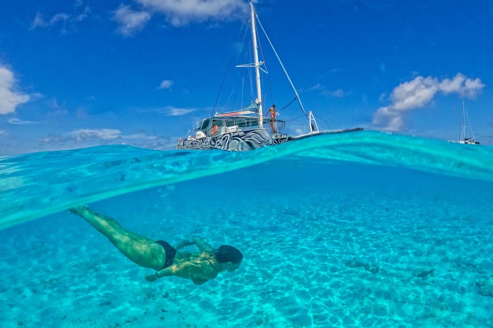 Een catamaran ligt meestal stabiel, maar Bluefinn vaart wel buitengaats en het kan de eerste 30 tot 45 minuten wat deining hebben. Neem een tabletje een half uur voor vertrek, blijf buiten zitten en kijk naar de horizon. Op de terugweg wordt meestal gezeild en dat voelt rustiger. Mocht je je erg zorgen maken om zeeziekte kan je ook de Powerboat naar Klein Curacao boeken, hierbij heb je gegarandeerd geen last van zeeziekte door de lage ligging van de boat.
